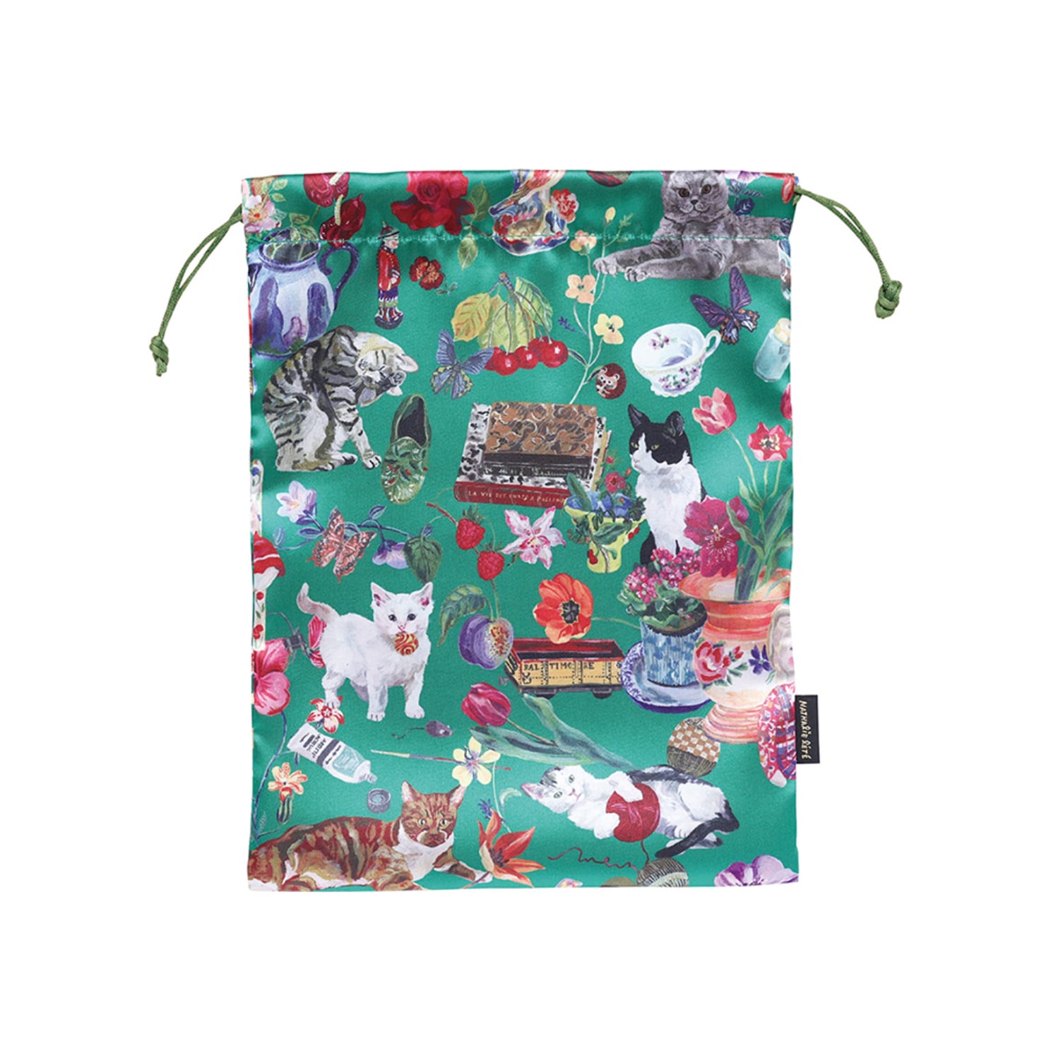 ナタリー・レテの独創的な世界観をギュッと詰めこんだ、鮮やかな色合いが目を惹くサテンの巾着です。