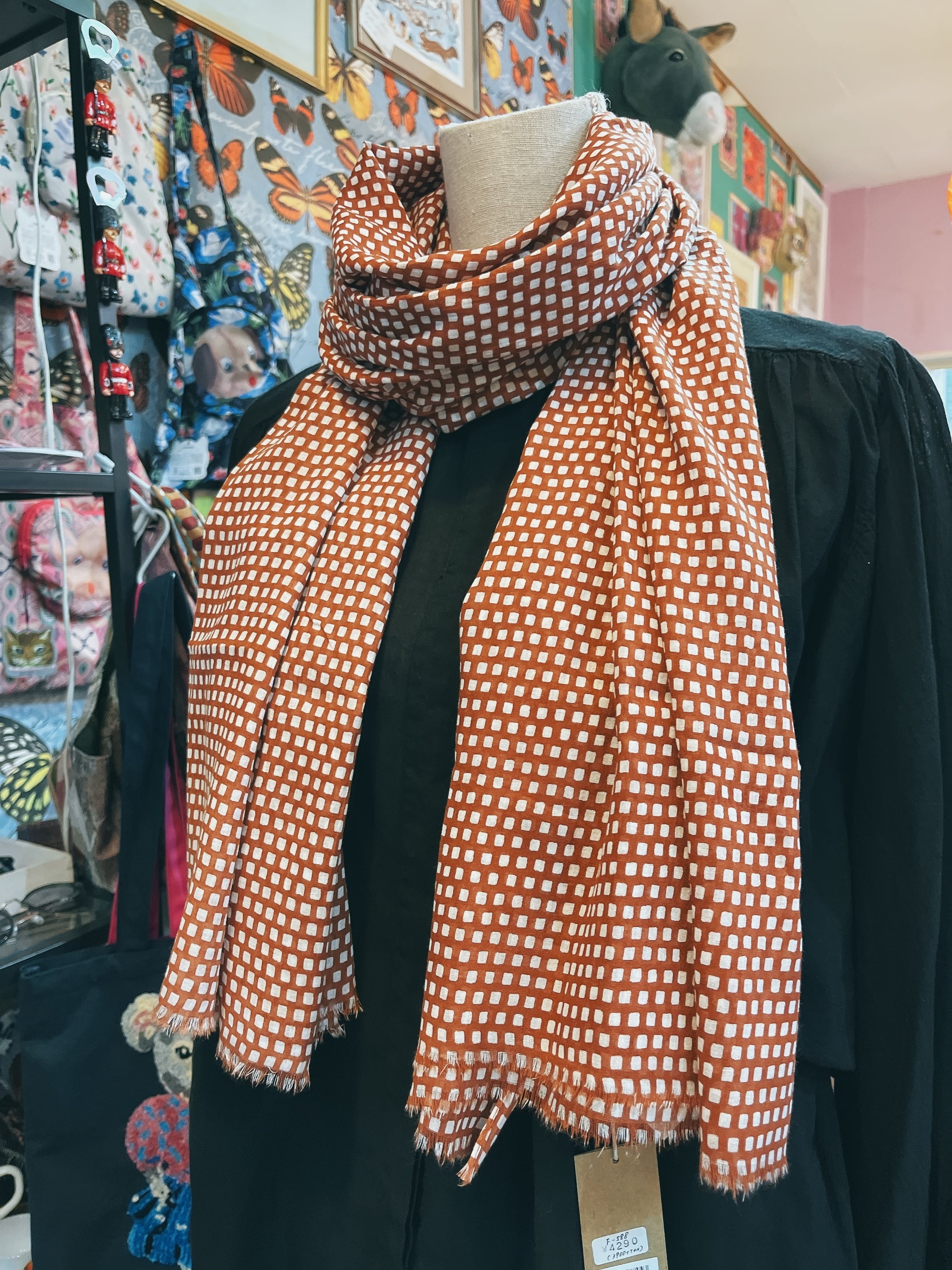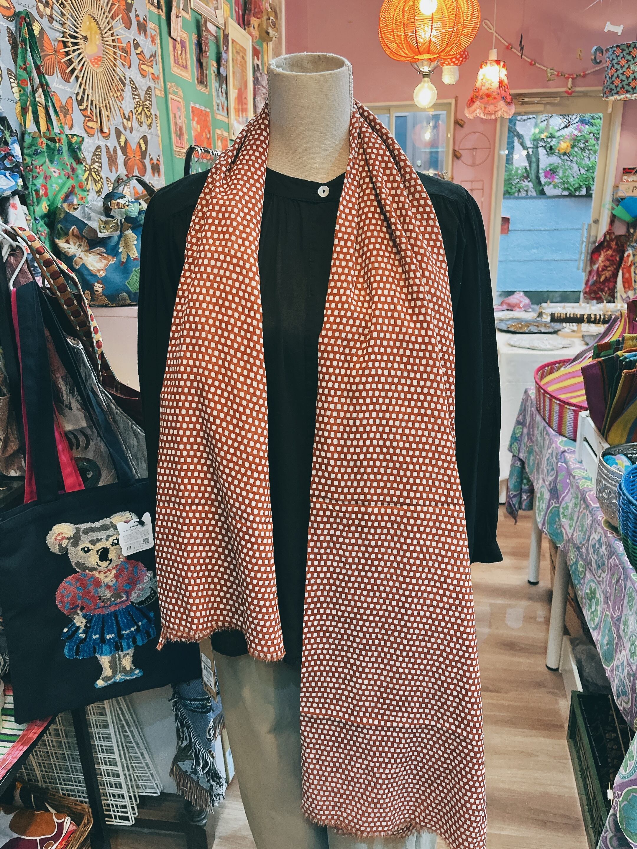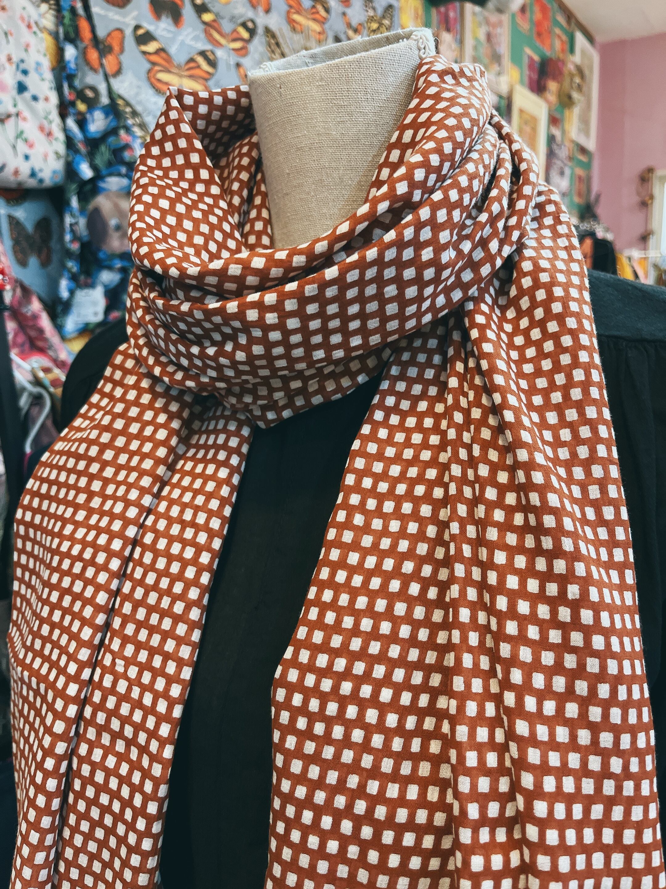 コットン100%で気持ちの良い肌触り、軽くて首に巻いても涼しくて、日除けや冷房対策にもなる万能のストールです。