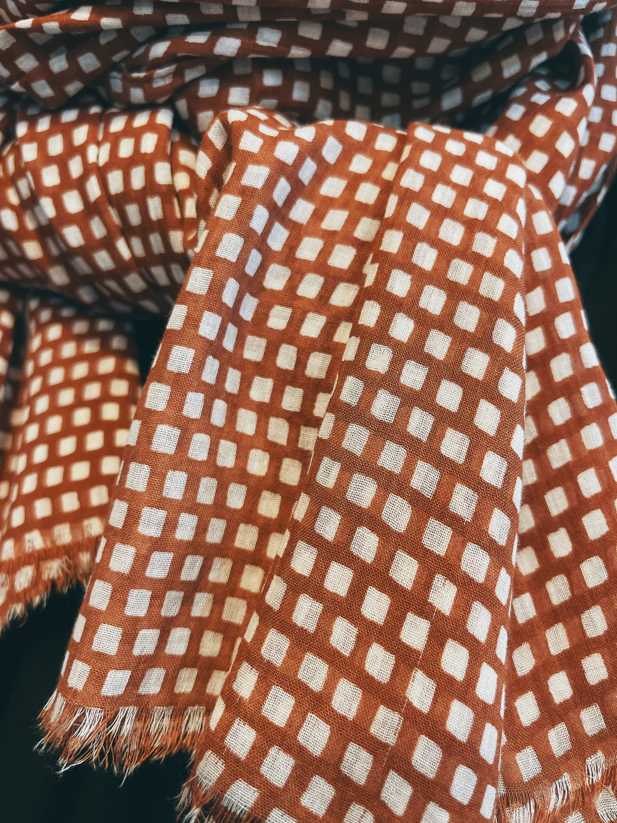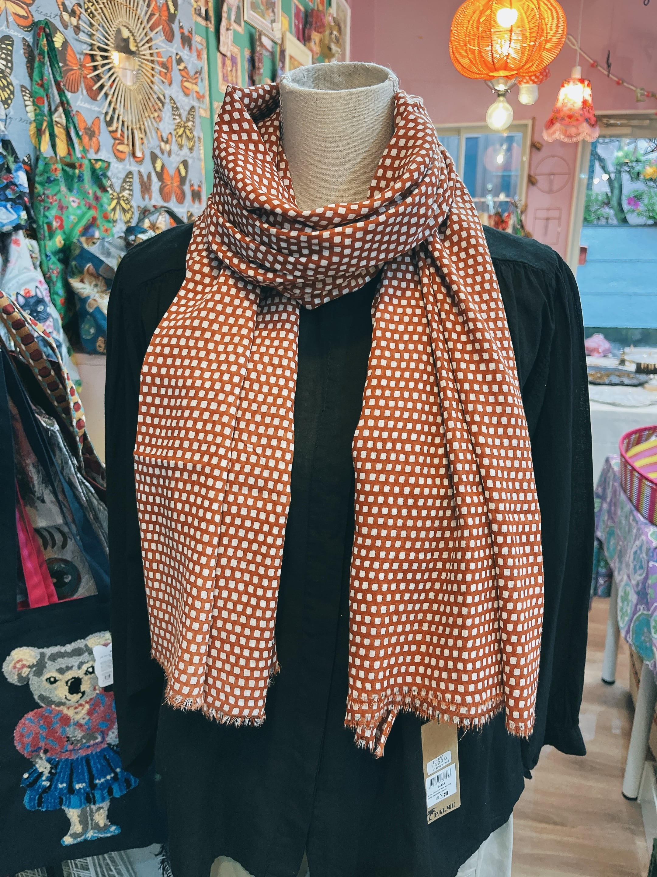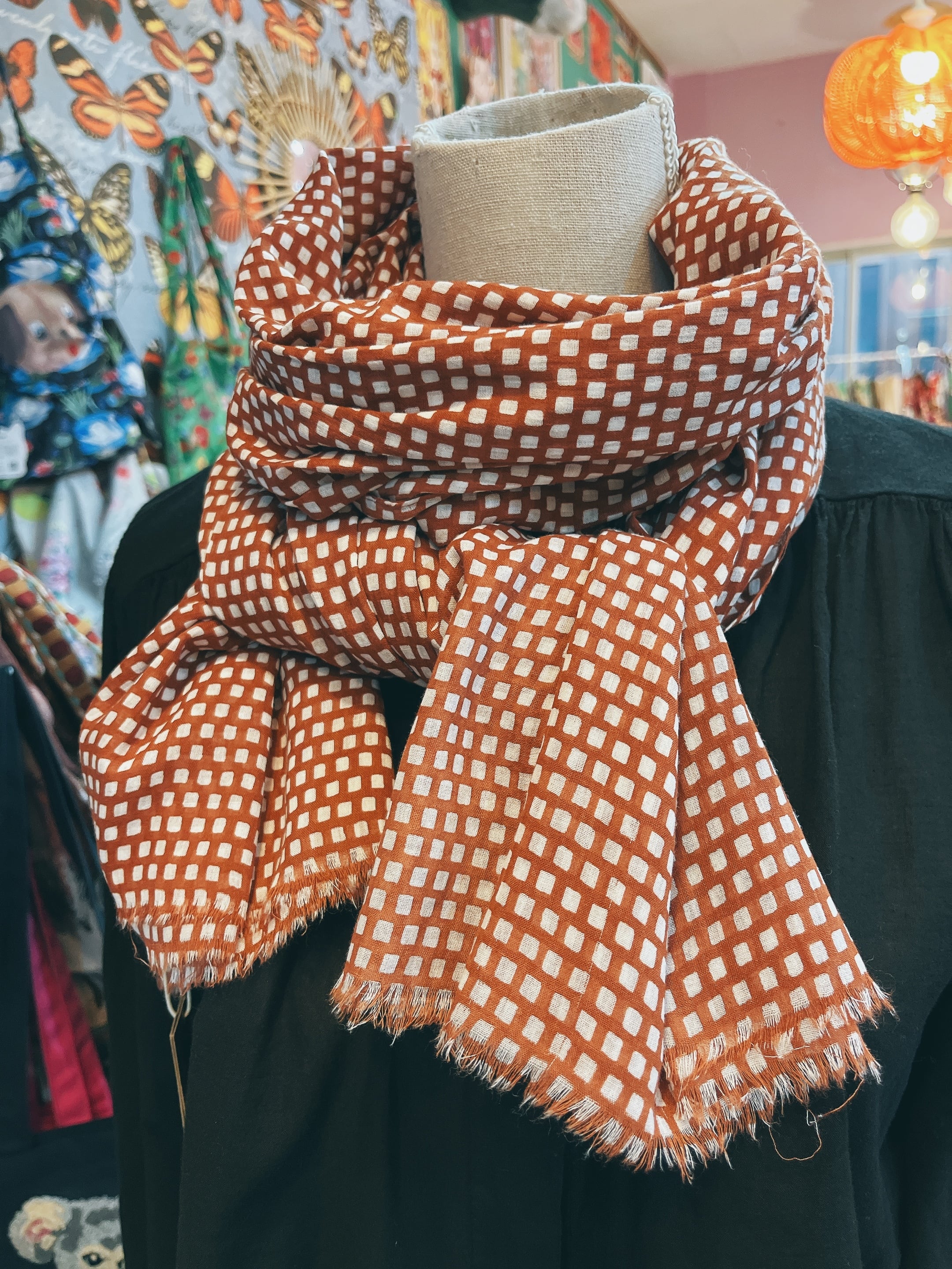 コットン100%で気持ちの良い肌触り、軽くて首に巻いても涼しくて、日除けや冷房対策にもなる万能のストールです。