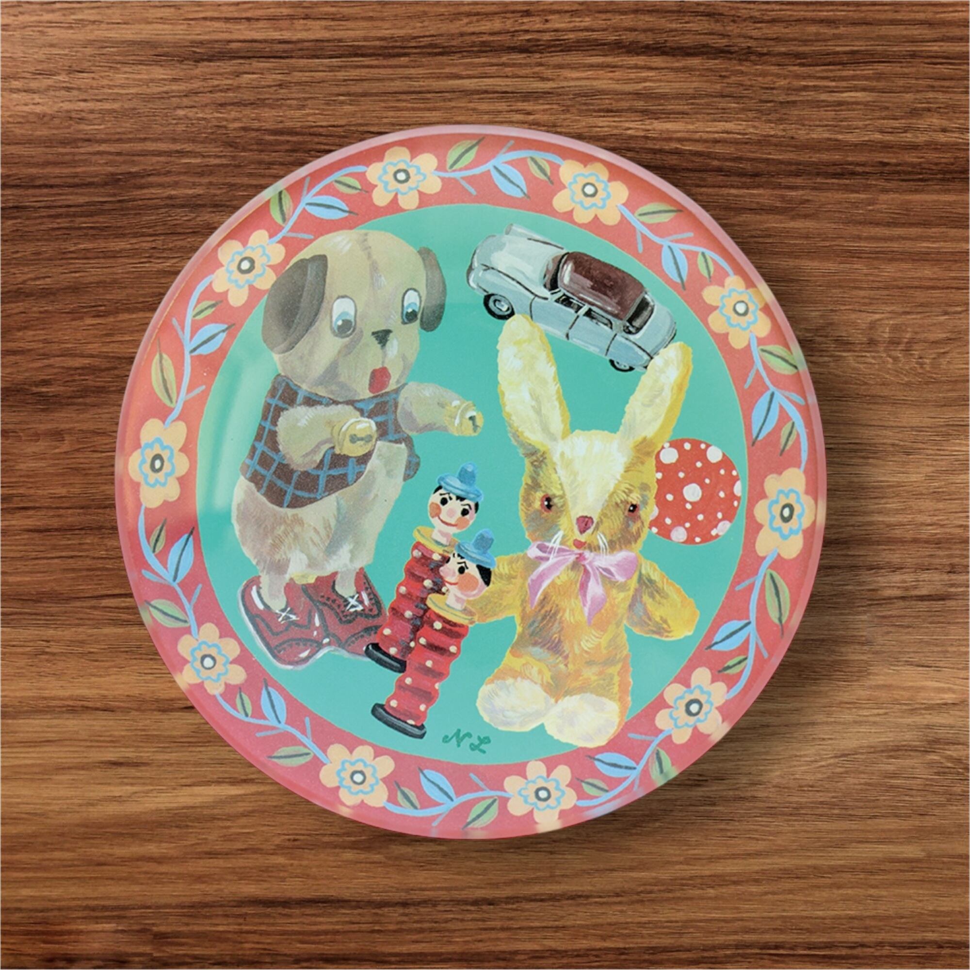 キュートでユニークなモチーフたち、ナタリー・レテらしい楽しい世界観を、10cmの手のひらサイズのガラスプレートにぎゅっと詰め込みました。
