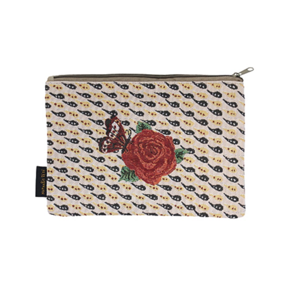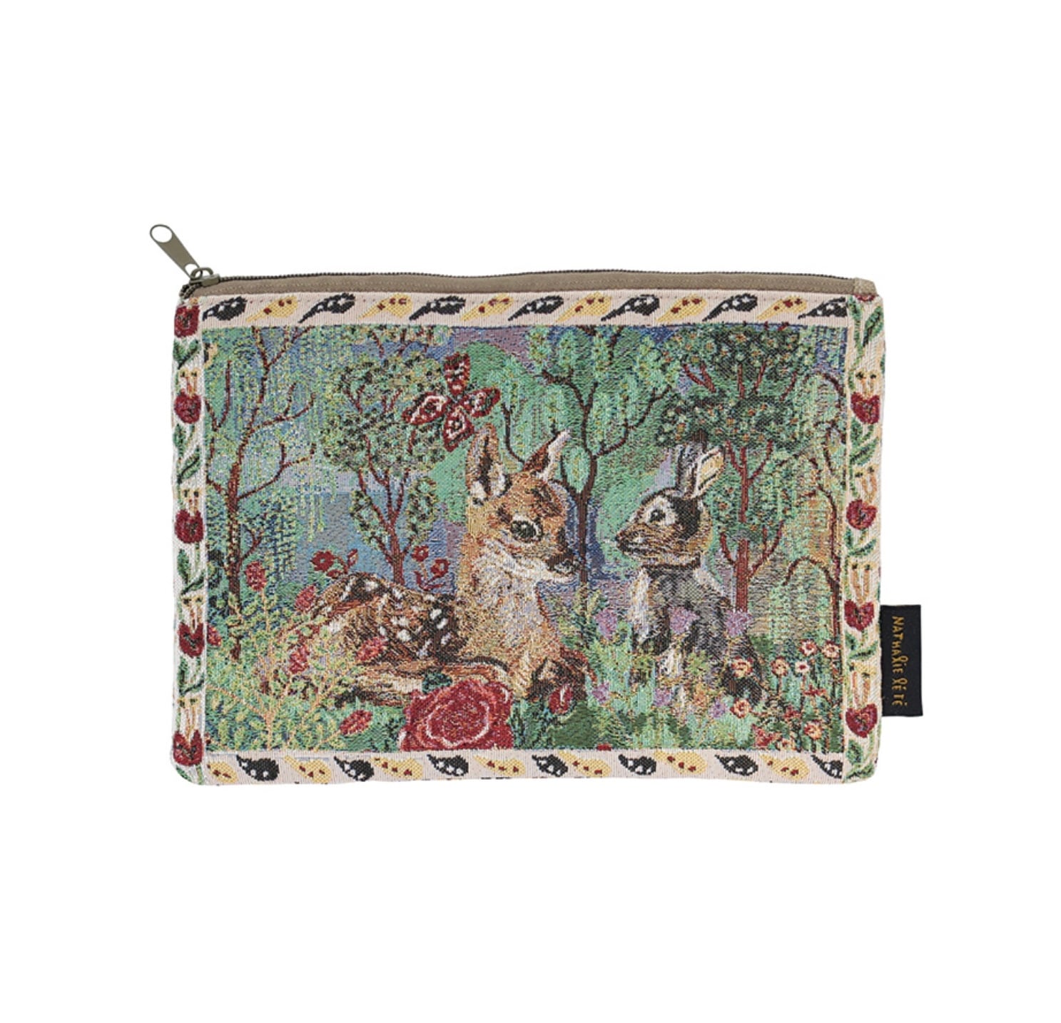 ナタリー・レテの描く繊細なタッチの草花や動物たちを、ゴブラン織りのポーチに落とし込みました。