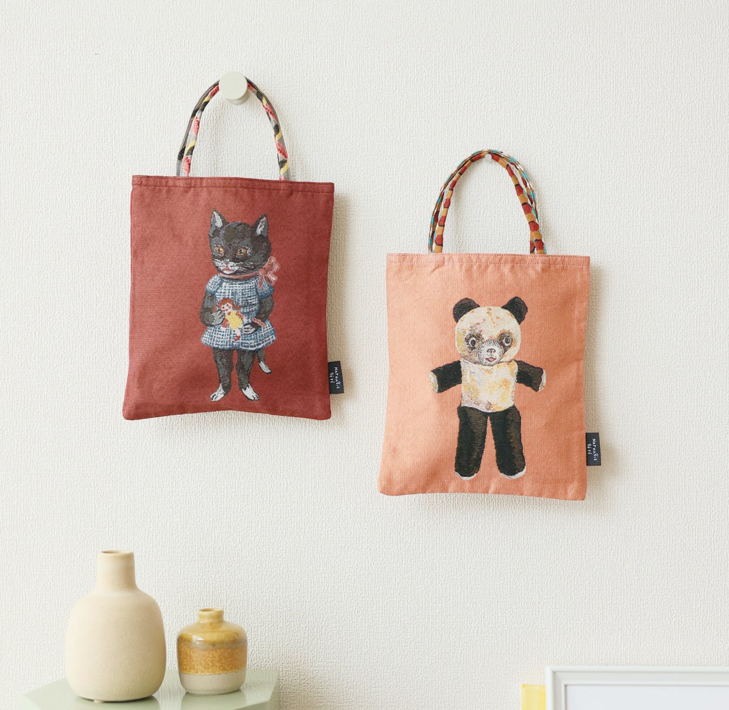 ナタリーレテさんの描く動物たちがとてもキュートなミニバッグ。