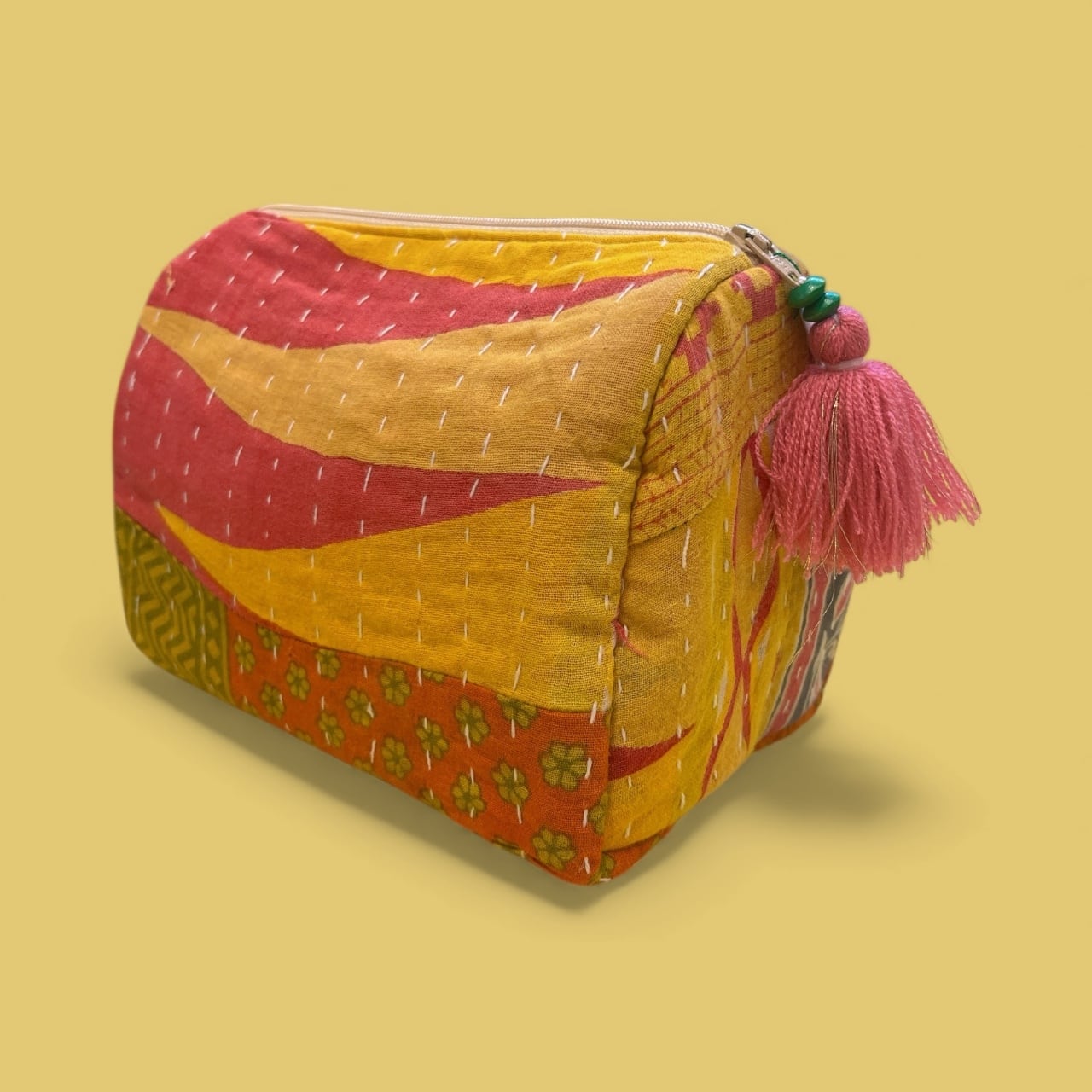 インドのヴィンテージ 刺子の生地で作られたポーチです。
