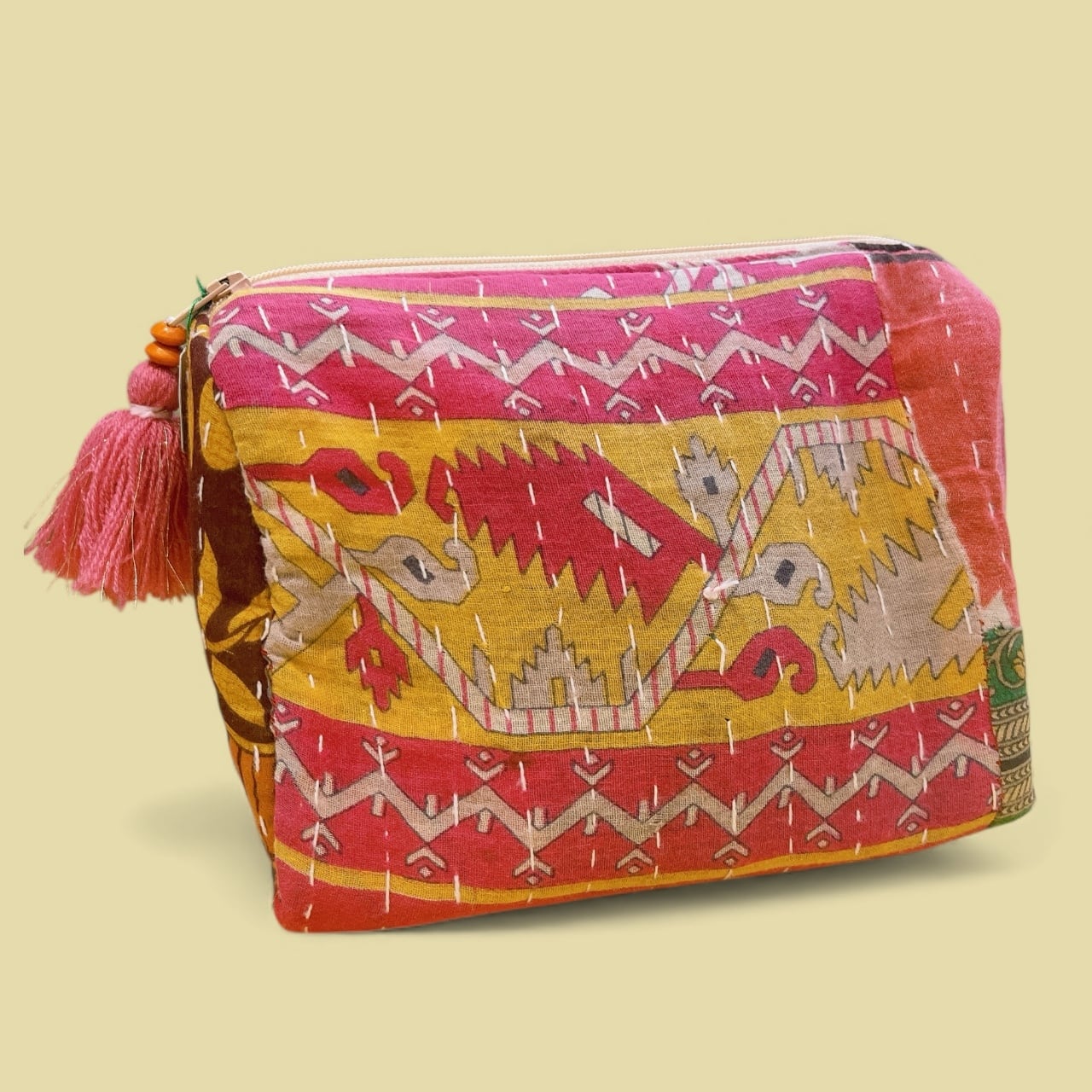 インドのヴィンテージの刺子の生地から作られたポーチです。