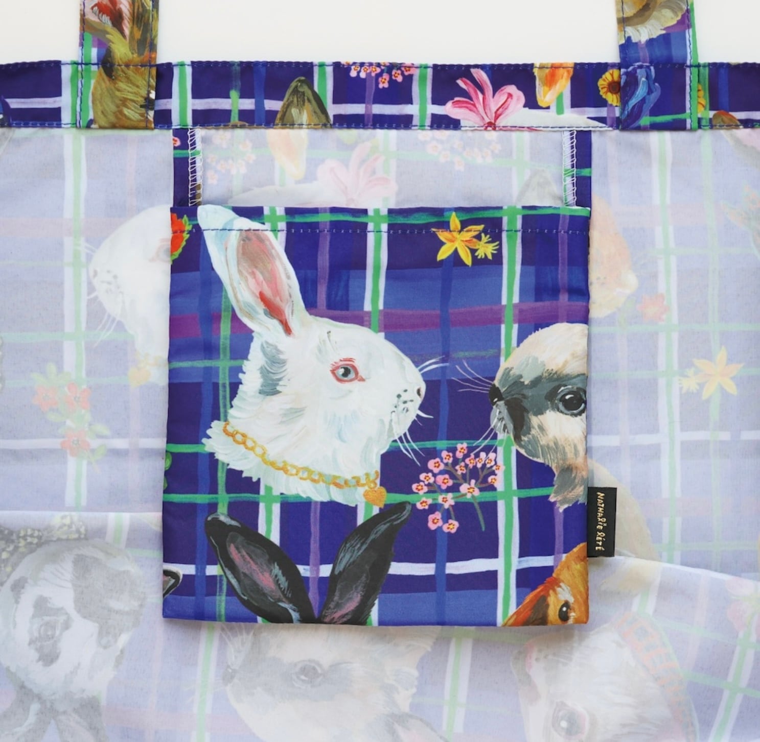 ナタリー・レテの描く、チェック柄と動物たちの見ているだけで楽しくなるデザインのバッグです。