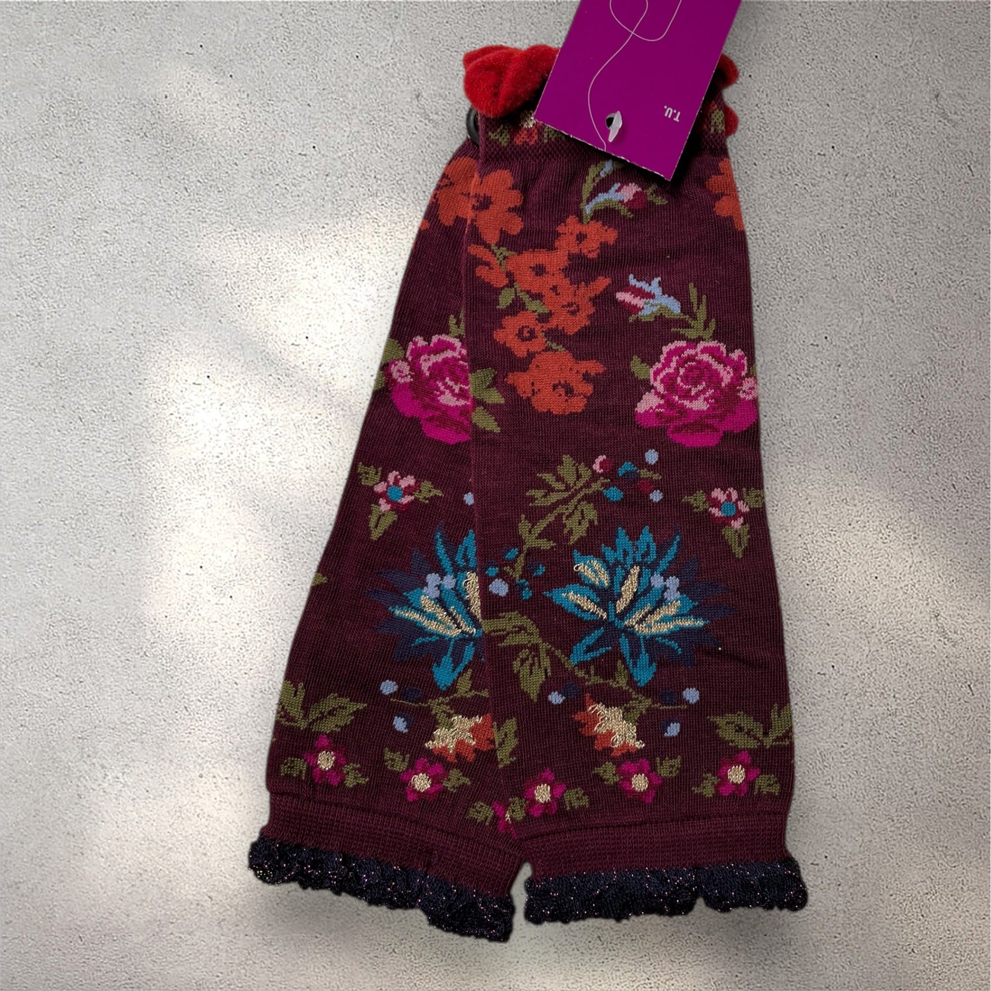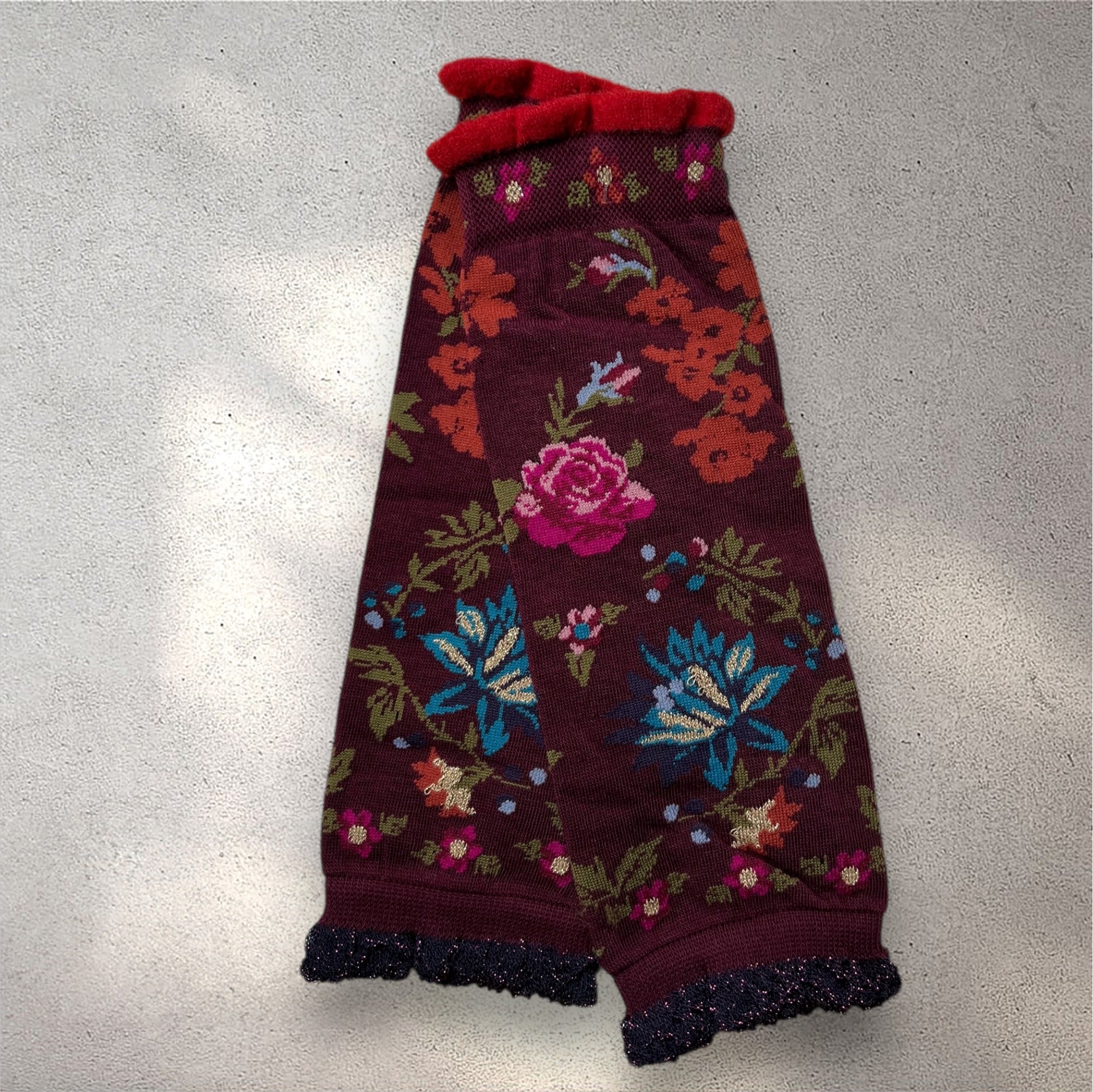 ラメのデザインのものも親指部分の縫い付けを外していただくとレッグウォーマーとしてもお使いいただけます。