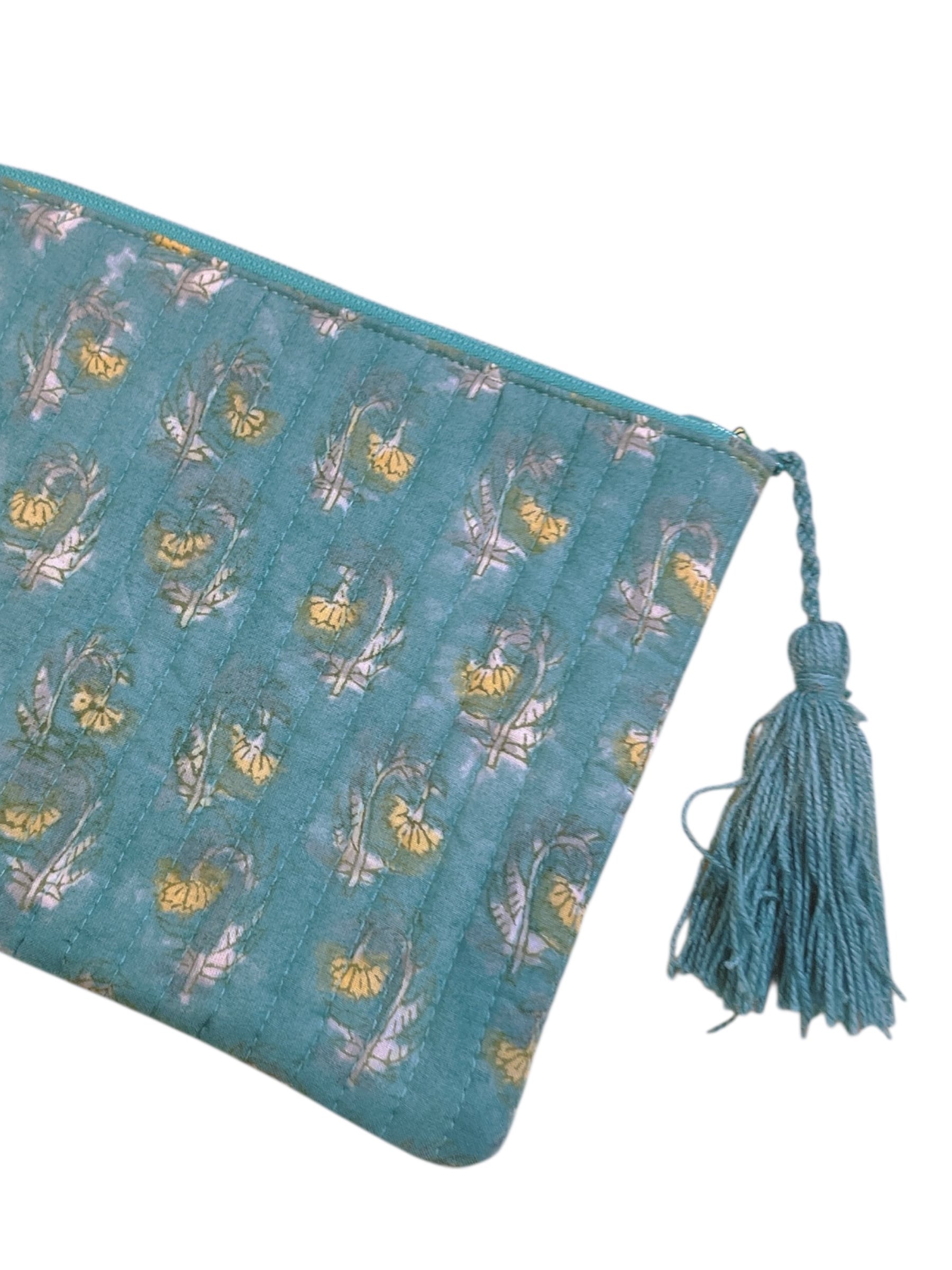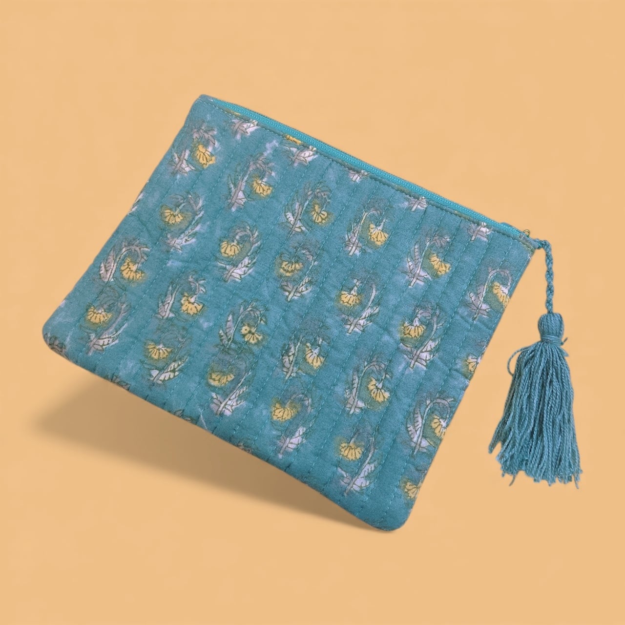 インドの伝統技法『ブロックプリント』を施した手触りのよいポーチです