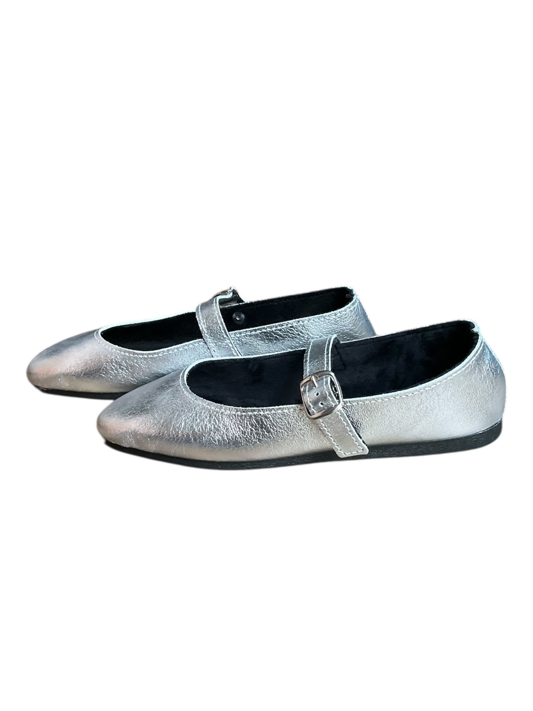 Javerflex メタリックレザー ワンストラップシューズ シルバー 37(23〜23.5㎝)
