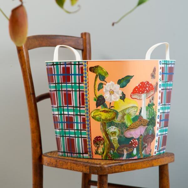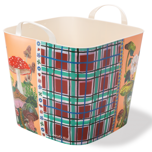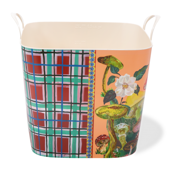 容量も大きく何を入れても使いやすいバケットです。別売りの蓋を閉めていただくとスタッキングもできます。蓋を閉めていただくと、サイドテーブルとしてもご使用いただけます。
