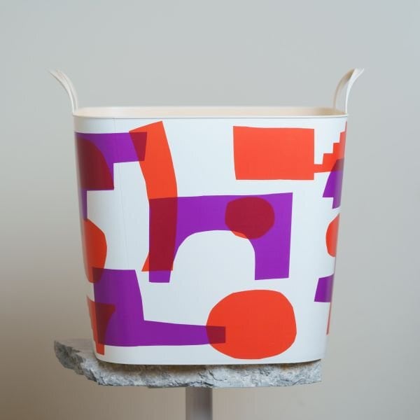 容量も大きく何を入れても使いやすいバケットです。別売りの蓋を閉めていただくとスタッキングもできます。蓋を閉めていただくと、サイドテーブルとしてもご使用いただけます。
