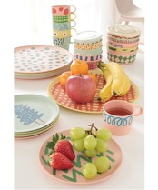 手描きのあたたかさとポップな色使いがミックスされたデザインは食卓を楽しくしてくれそう。