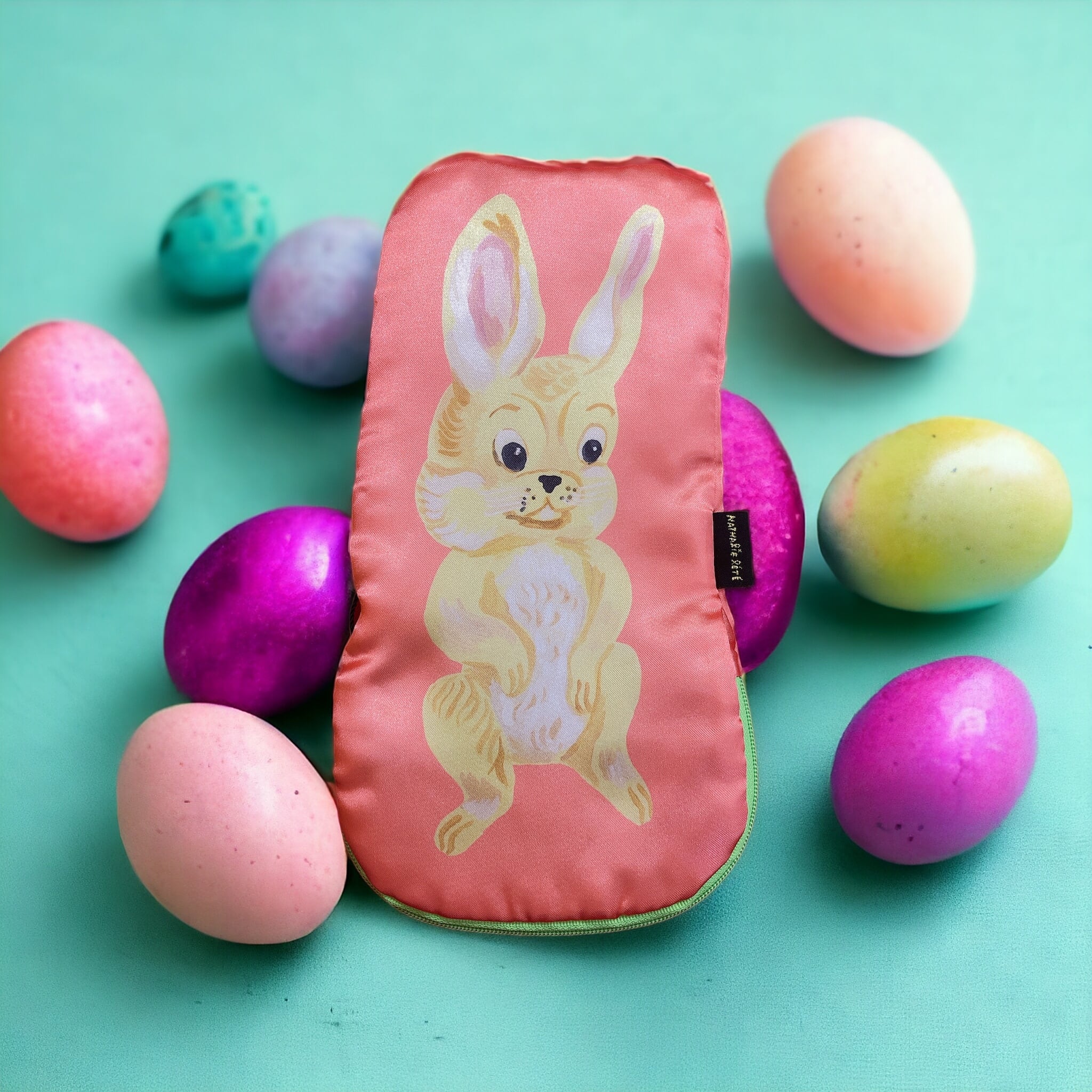 ナタリーレテさんの描くキュートな動物や女の子が目をひくサテン生地のポーチ。