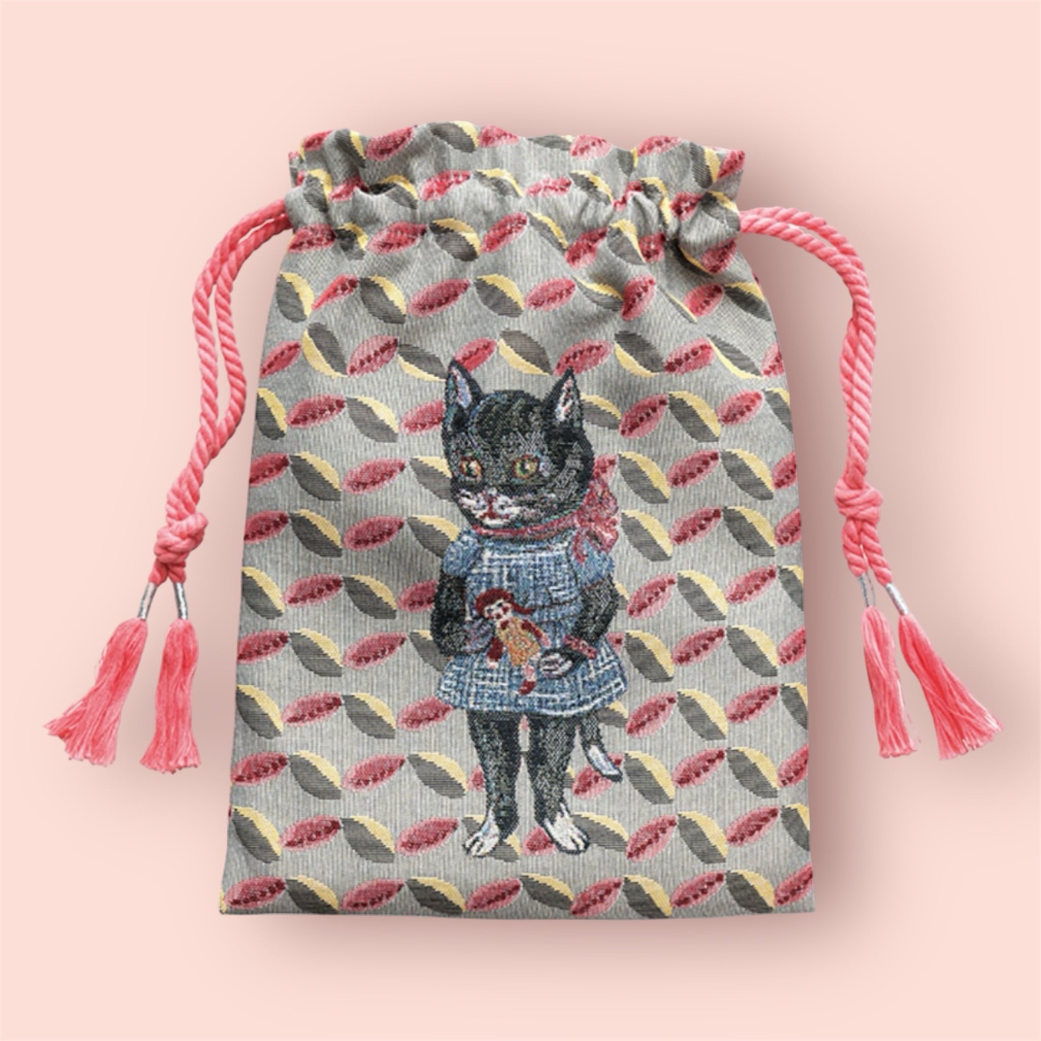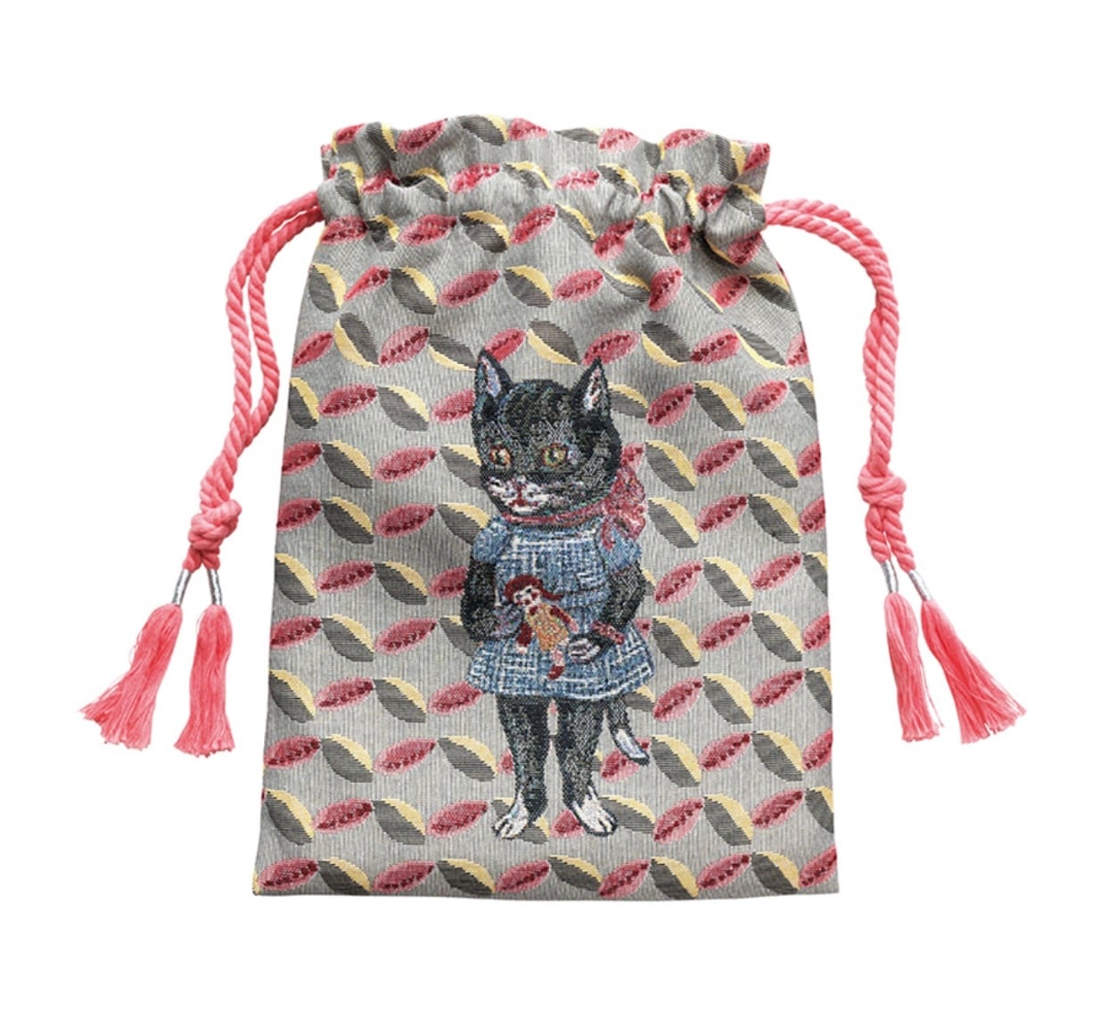 ナタリーレテの描く独特な表情の動物とリボンデザインを織り込んだ巾着ができました。