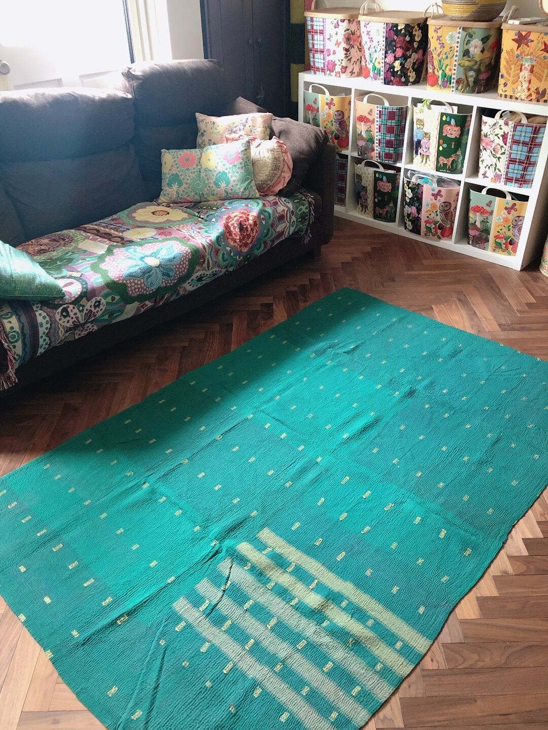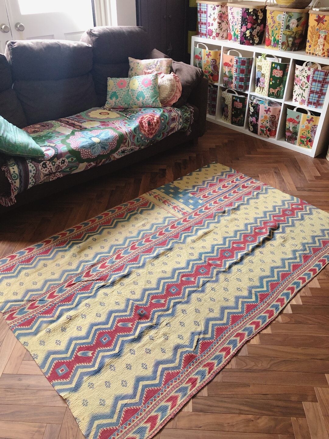 インドのラジャスターン州の街、ジャイプールで買い付けしたヴィンテージ のラリーキルトです。