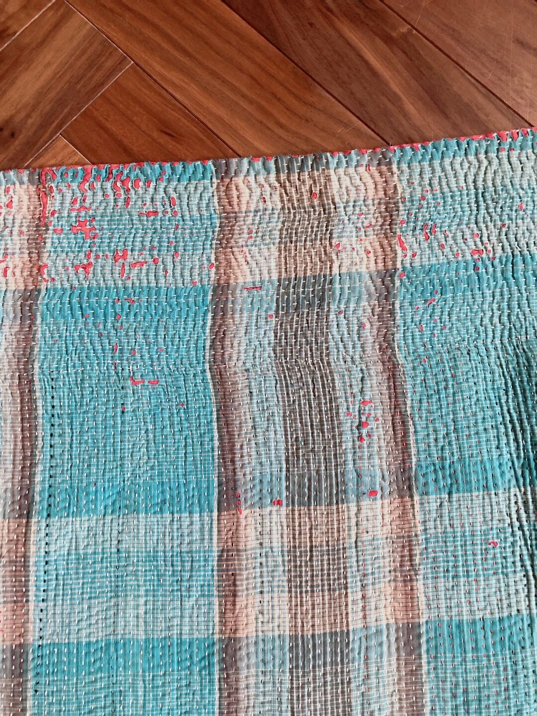 現地で状態も踏まえ、私が厳選して買い付けてきたお品です。端の状態が悪いものもございますが、全体を通してそれも良しとして買い付けてきたキルトです。ご了承くださいませ。