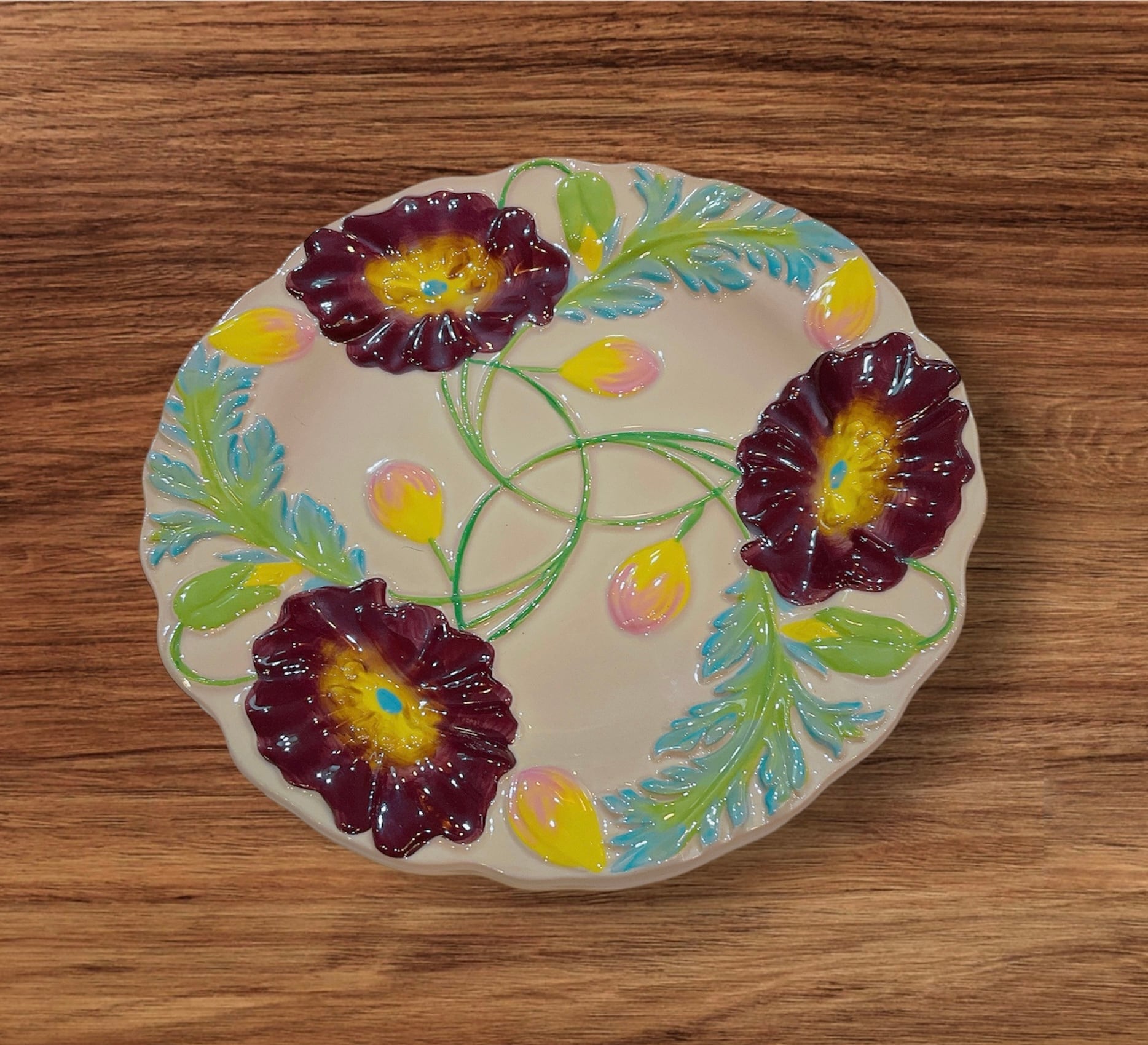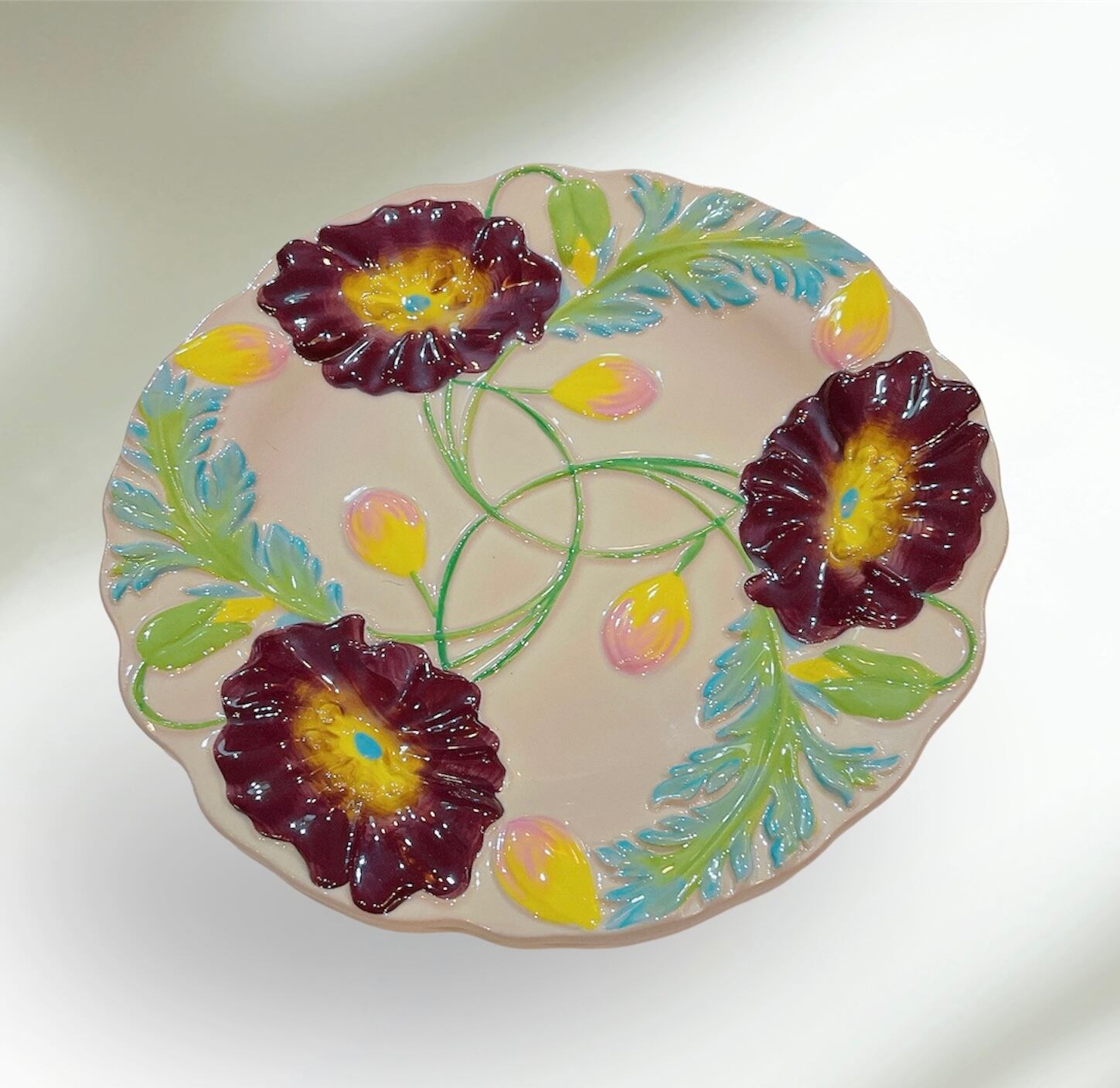 デンマークのブラウンド「rice」のハンドメイドで作られた発色の美しいセラミックのエンボス調のケーキプレートです