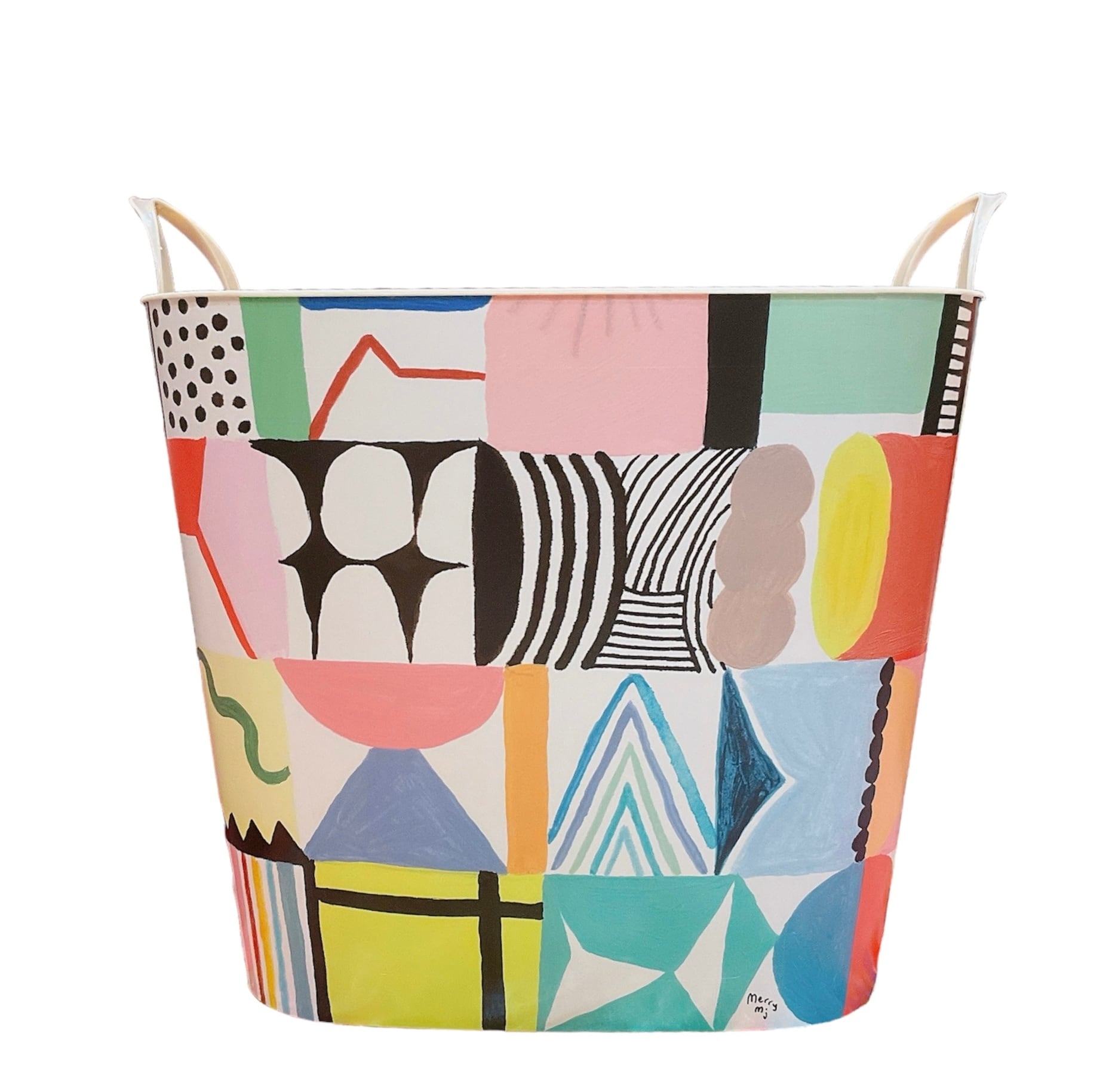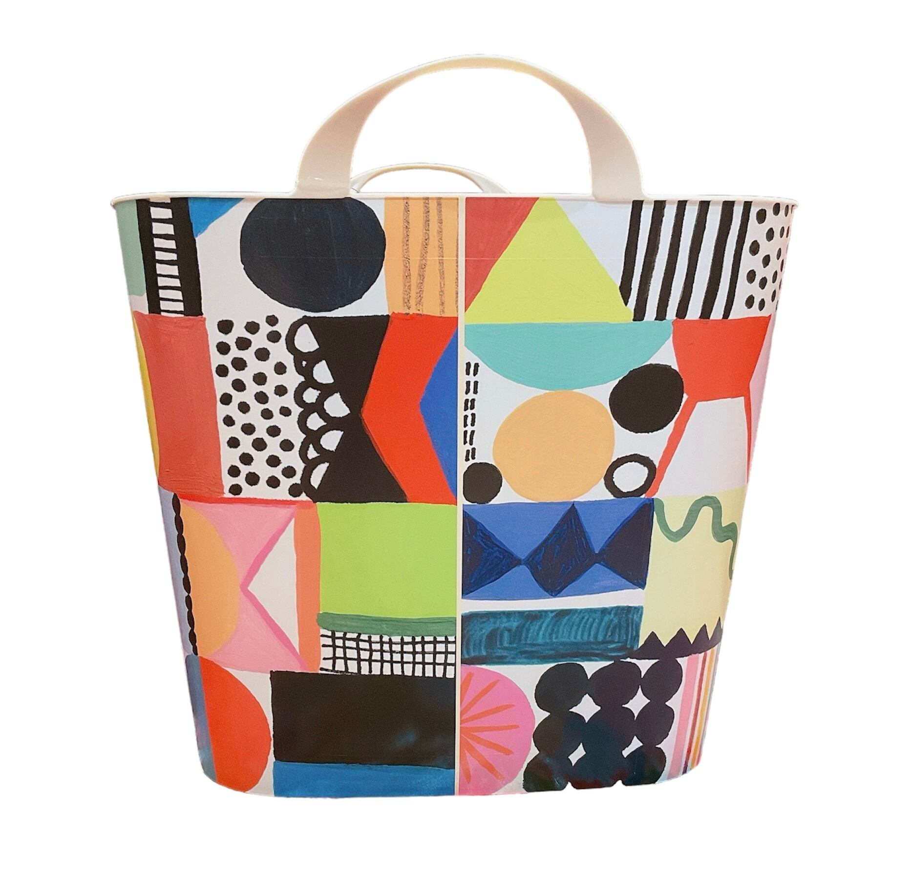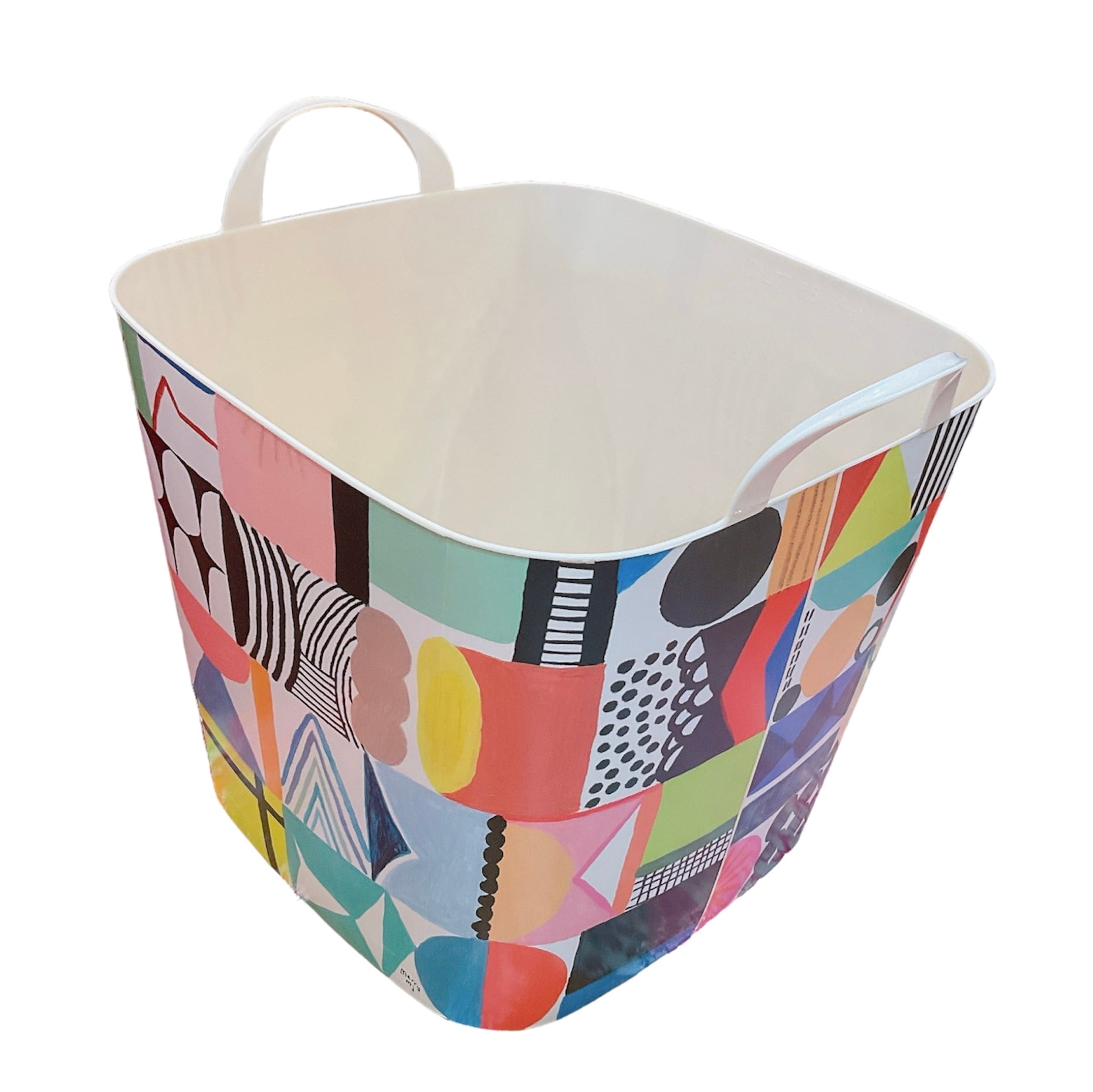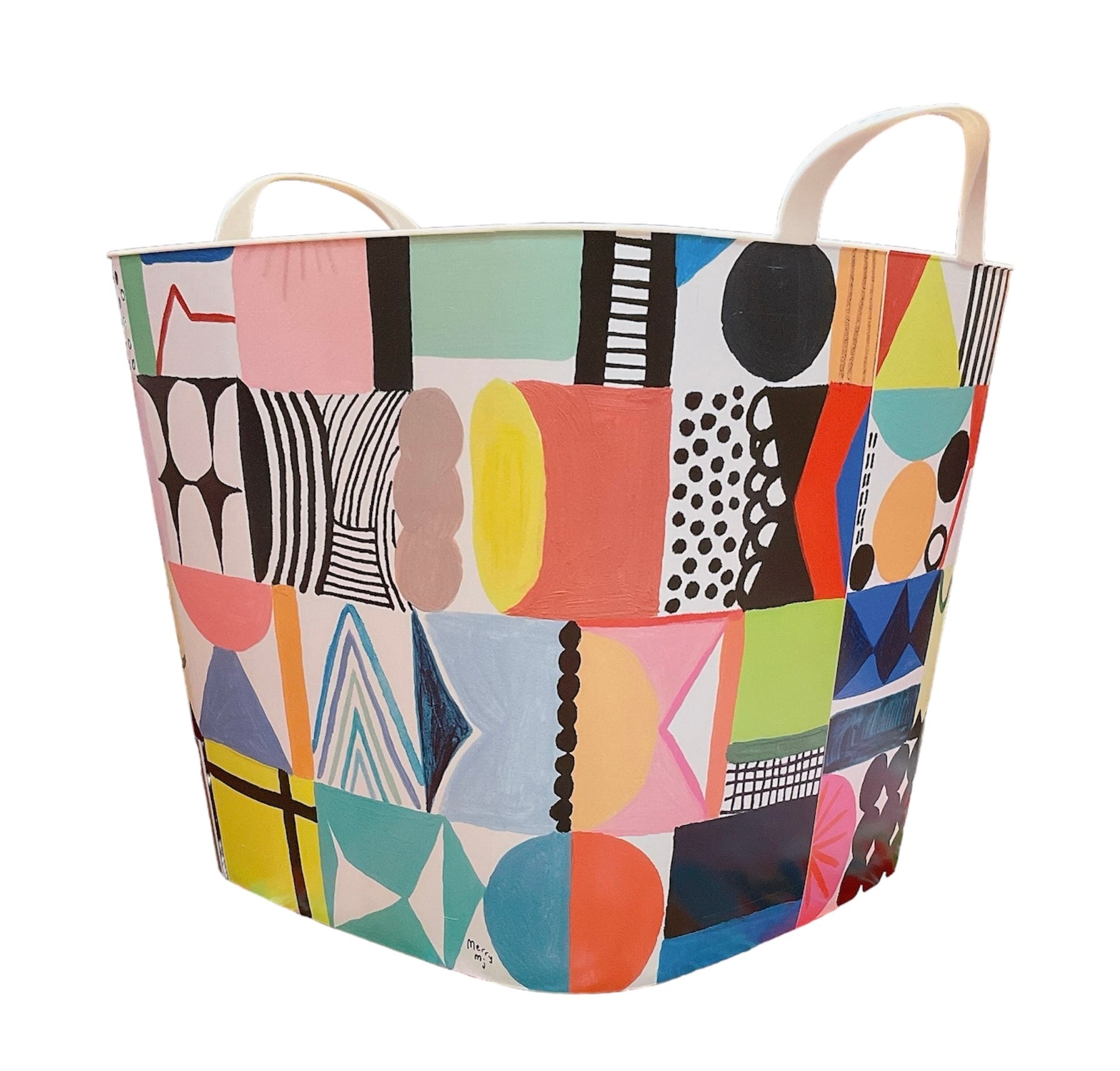容量も大きく何を入れても使いやすいバケットです。別売りの蓋を閉めていただくとスタッキングもできます。蓋を閉めていただくと、サイドテーブルとしてもご使用いただけます。