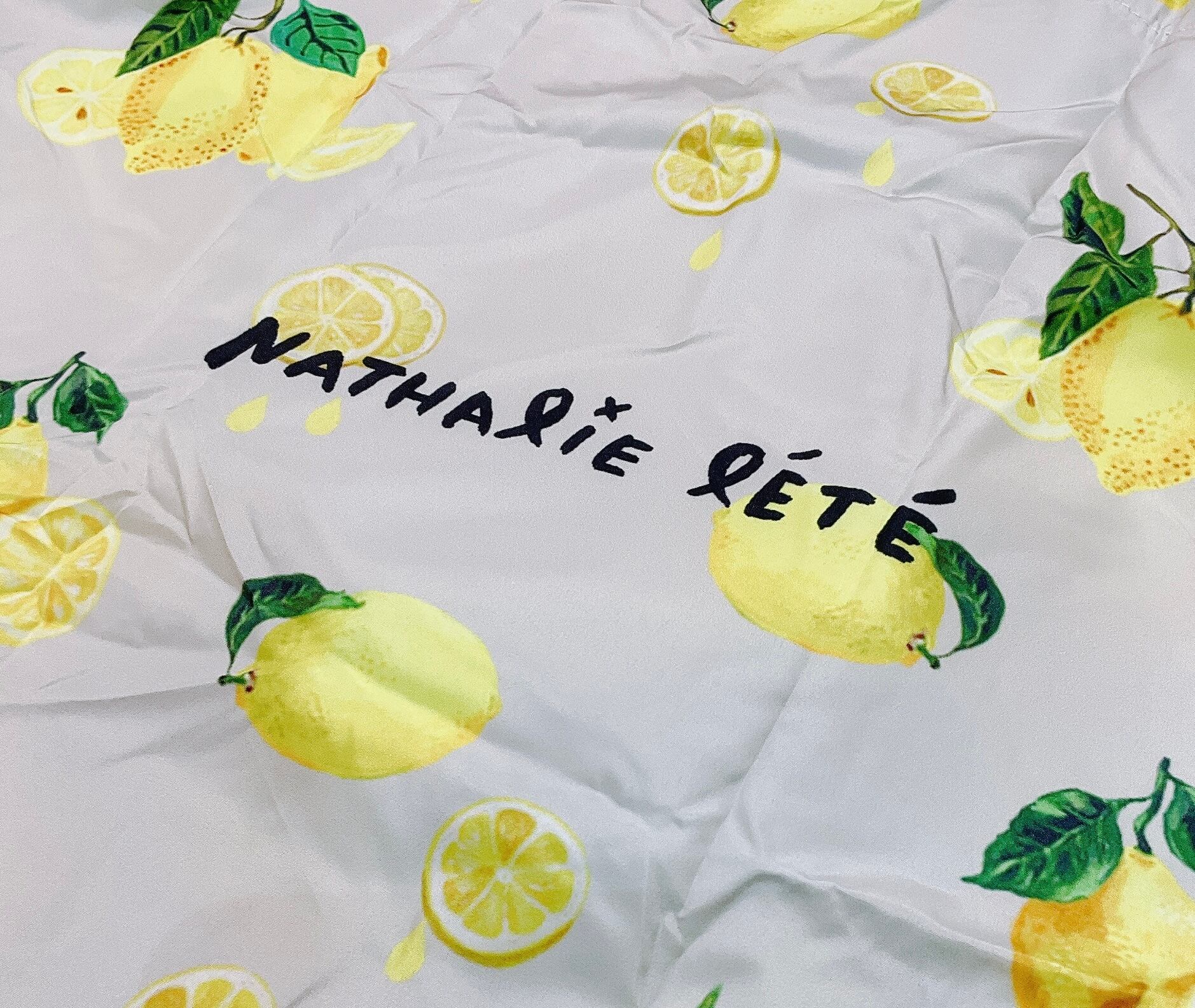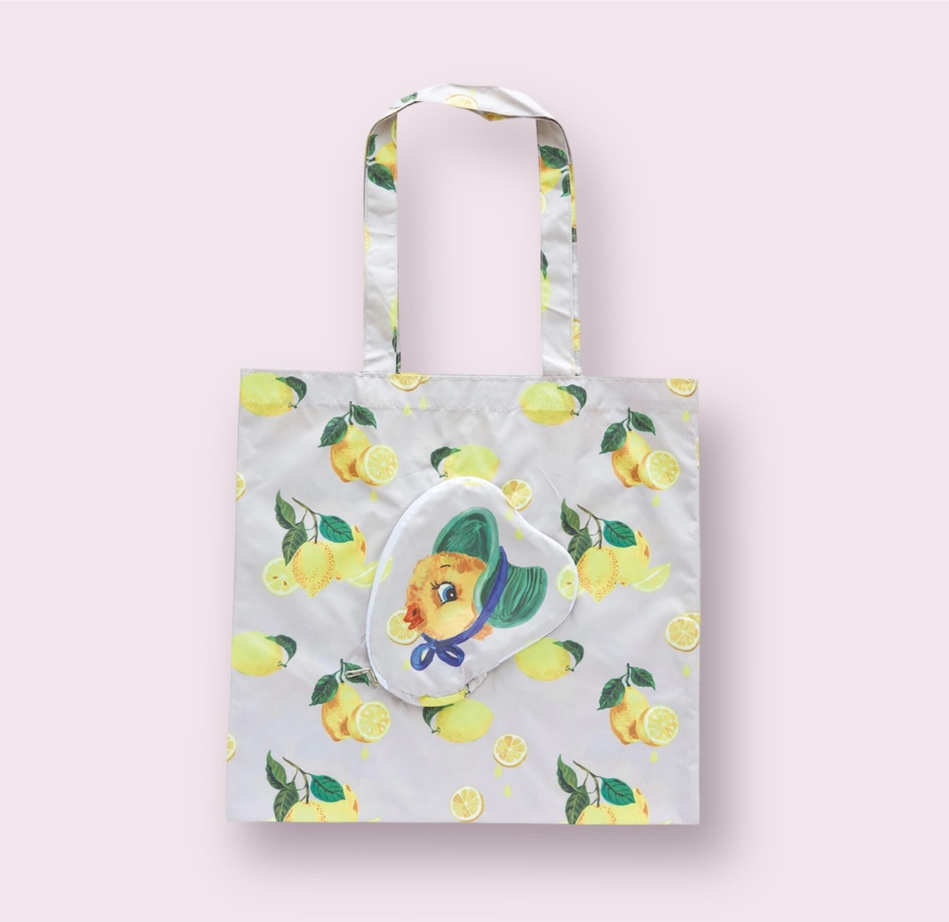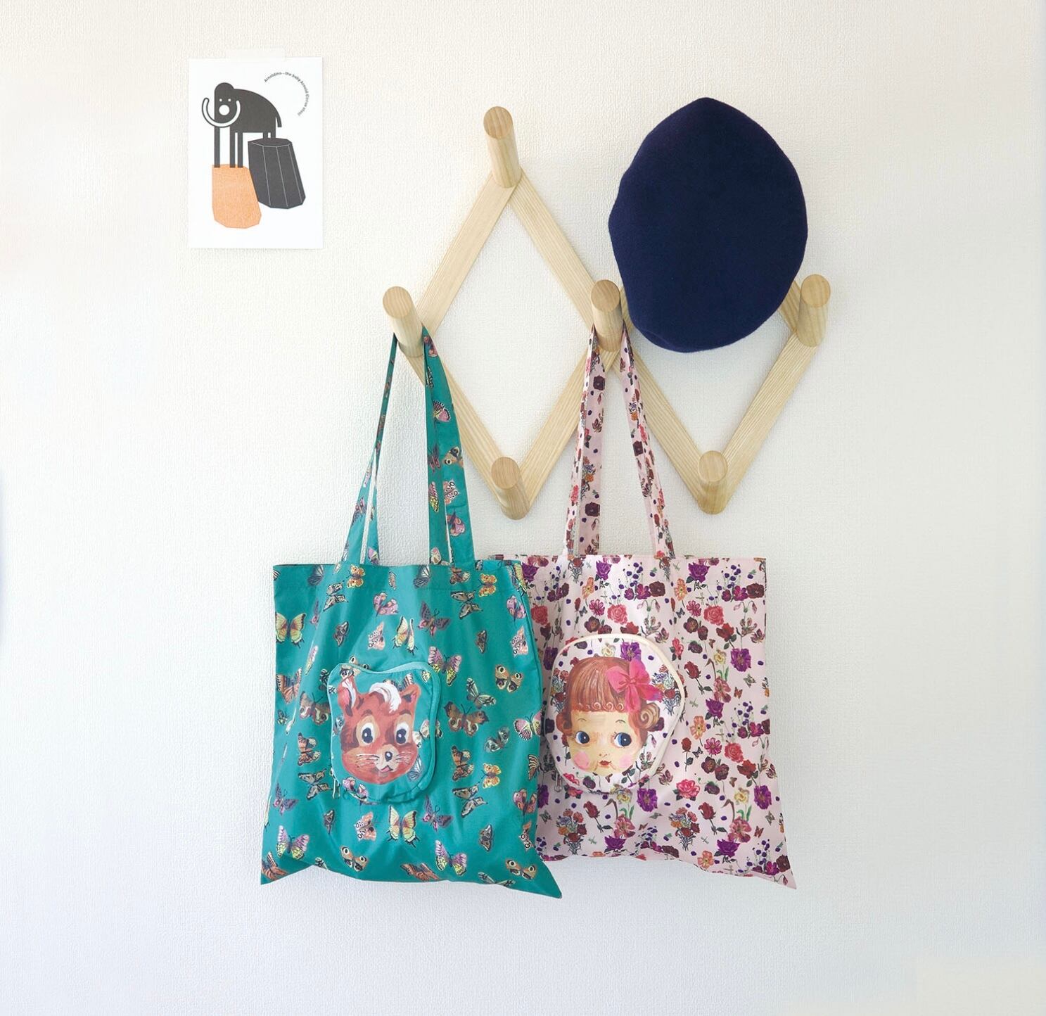 ナタリーレテさんの描くキュートな動物や女の子が目をひく収納ポーチ付きバッグ。