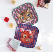 ナタリーレテさんの描く個性豊かな動物たちが目をひくタオルハンカチです。