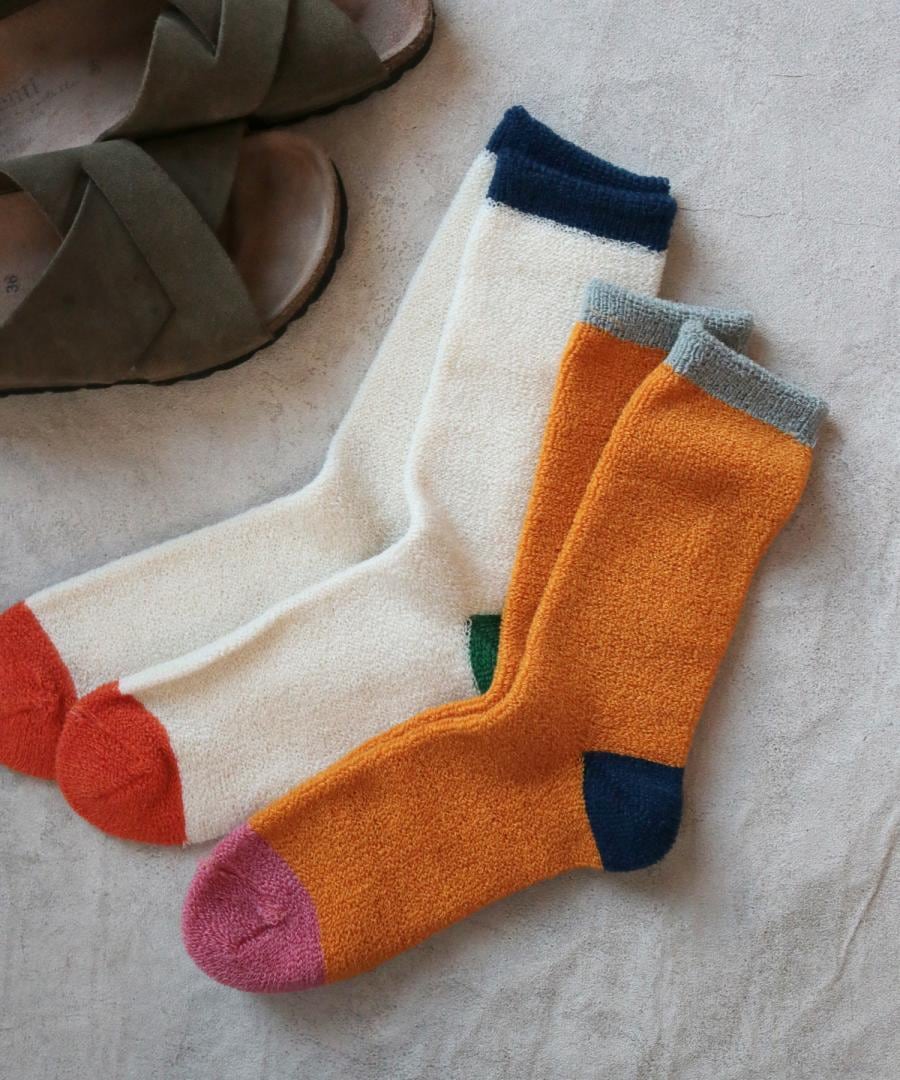 シンプル、フォークロア、シュール、ナチュラル、アウトドア、クリエイティブ等、多種多様な要素を取り入れ、1ブランドでありながら複数ブランドであるかのような不思議な世界観をもった靴下ブランドです。