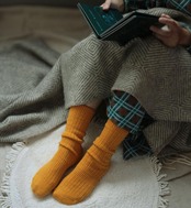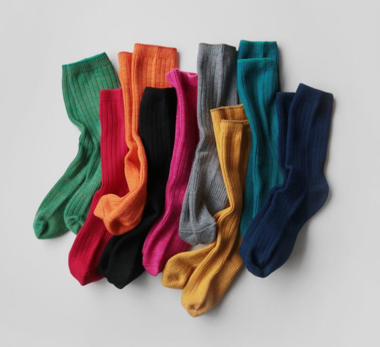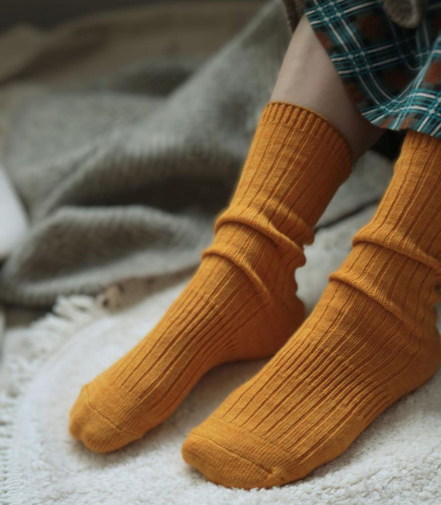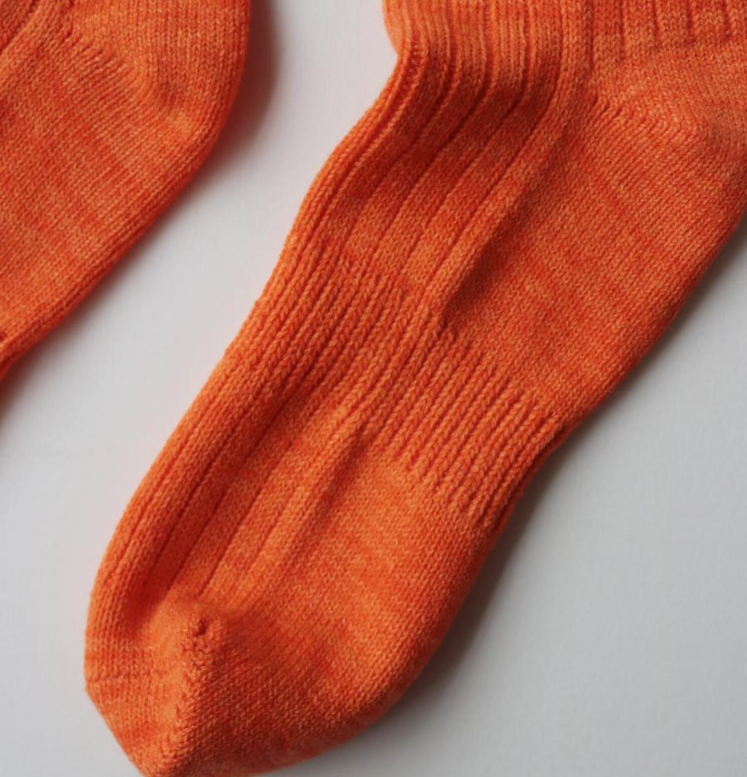 メリノウールを贅沢に使った混紡糸とコットン100%糸を掛け合わせた、暖かくて風合い抜群の靴下です。