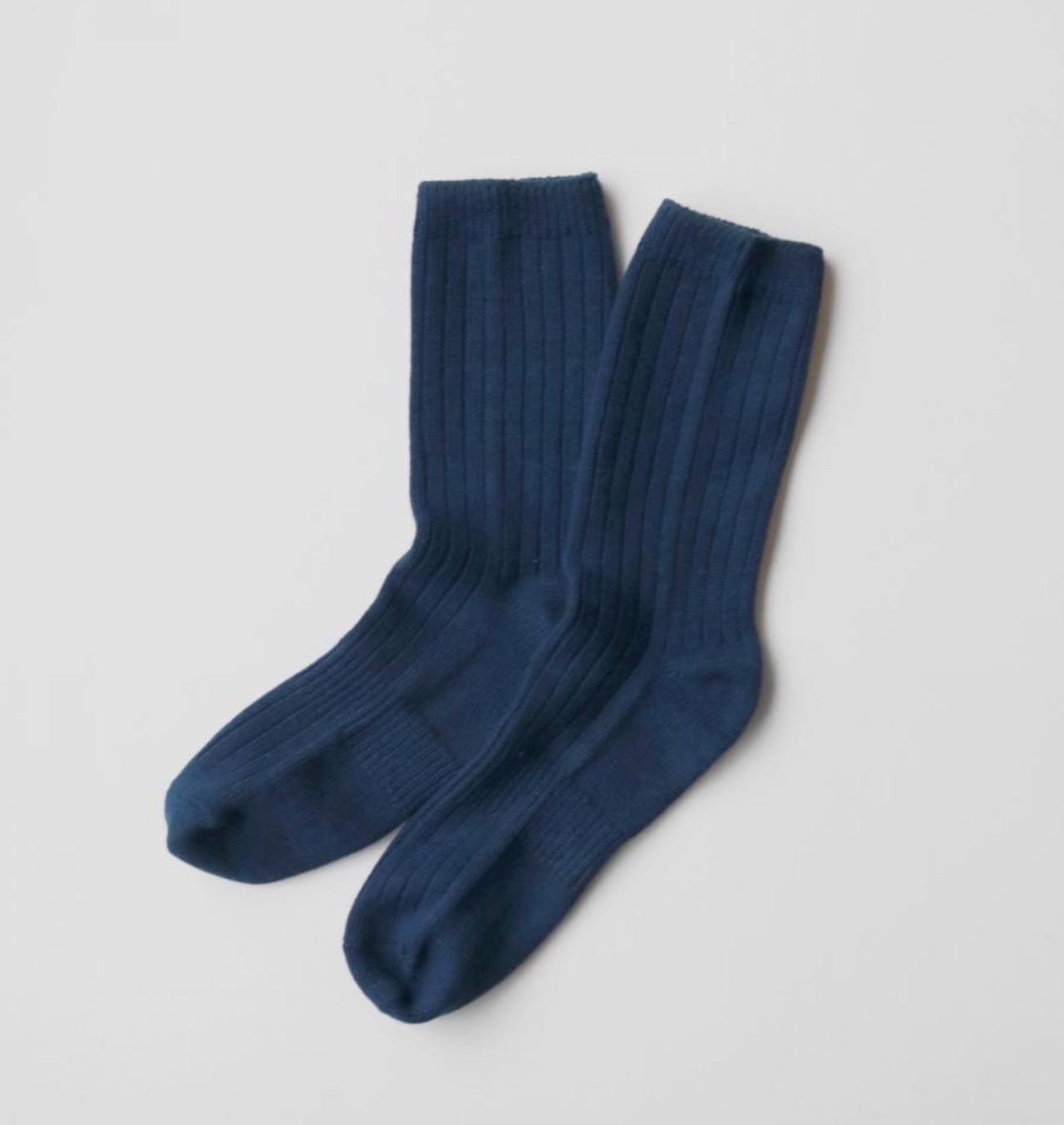 メリノウール30%ミックスリブクールソックス(ネイビー)